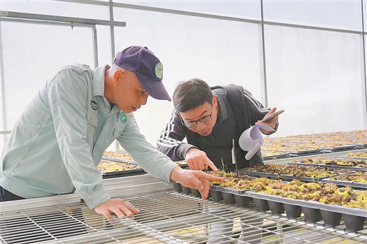 科技可以帮助人,但无法取代人。这时,方格上覆盖的青苔引起了记者的注意。“最难把握的是湿度。通风能降低温度,但会加快培养基质表面水分的蒸发。如启用喷淋系统,又可能导致基质底部积水。这些来自大瑶山的青苔是一道保湿屏障,有水即活,不争养分,真是育苗佳配。”陶海优说。