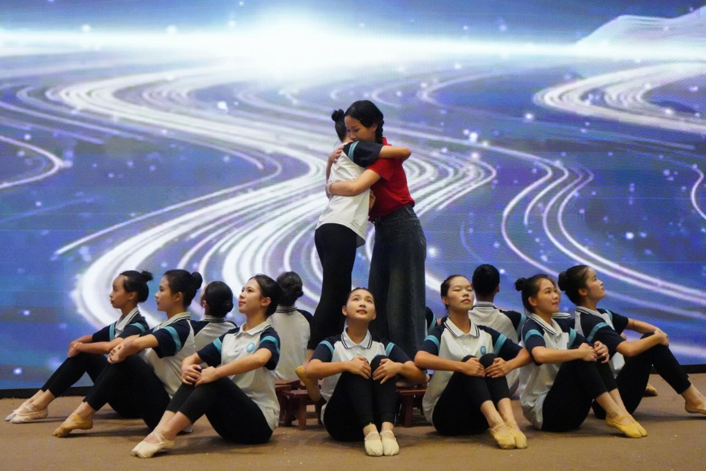 活动现场,阳朔县教育局联合广西艺术学院、阳朔县文化馆、桂林千古情等单位和企业开展文艺汇演,参演人员用绚丽的舞蹈、动听的歌声、真挚的情感演绎新时代教育风采。