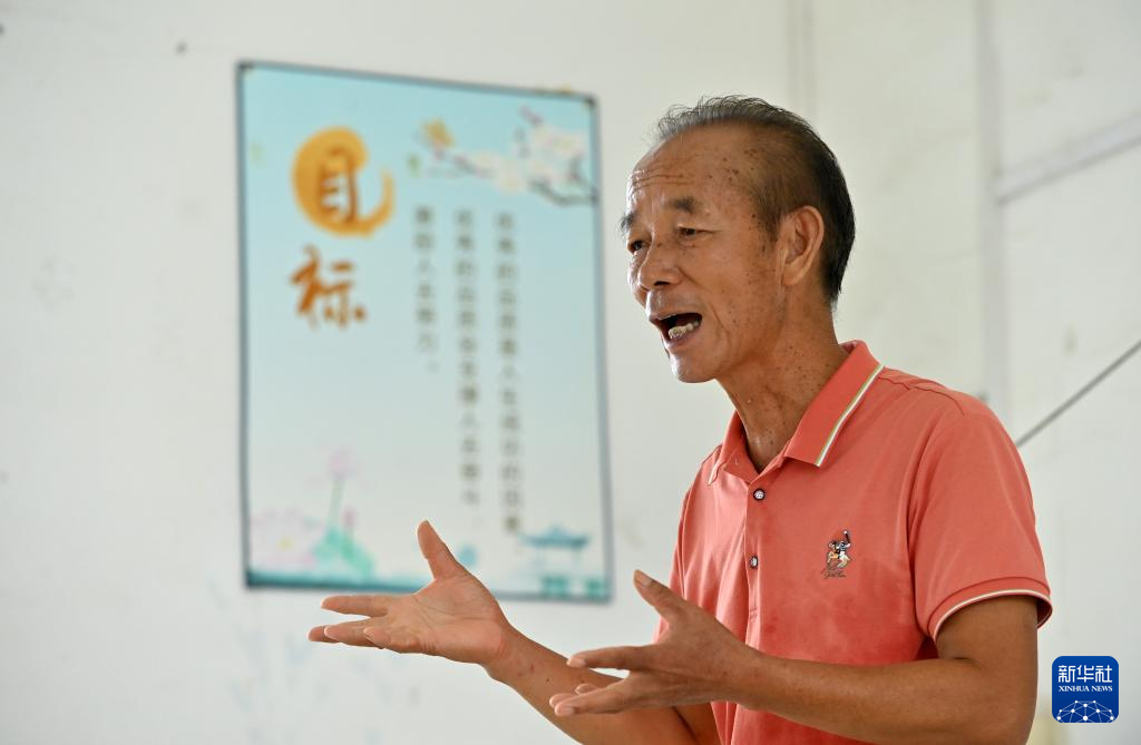 9月9日,在广西宾阳县王灵镇中心学校七新教学点,王英红老师课间和学生做游戏。