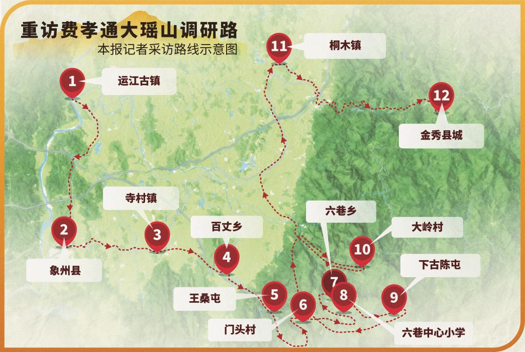 重访费孝通大瑶山调研路记者采访路线示意图