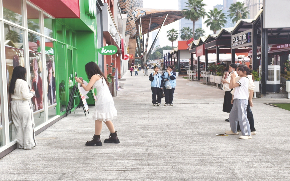 12月21日,冬至,南宁暖和,街头一些市民穿短袖出行。记者宋延康 摄