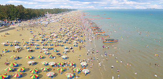 东兴市滨海旅游发展也不断谱写新篇。中越界河游、海上游等边境特色旅游产品不断丰富,京族哈节、京族婚俗展演、中越界河大联欢、中越跨境足球友谊联赛、中越跨境自行车骑行、中越匹克球赛等活动成功举办。广大游客跟着节庆、山歌、赛事游东兴,旅游市场持续火爆,旅游品牌影响力持续攀升。东兴市入选2025年“100个值得去的国内小城”“全国县域旅游发展最快的100个县”“中国县域旅游发展潜力百强县市”三个百强榜单。2025年,全市接待游客超1700万人次,其中接待旅游团1.3万个。
