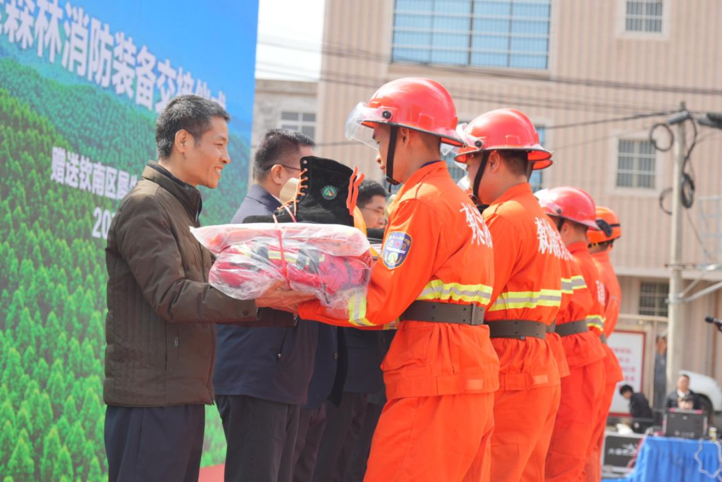 森林防灭火装备赠送环节。闭秀玉 摄