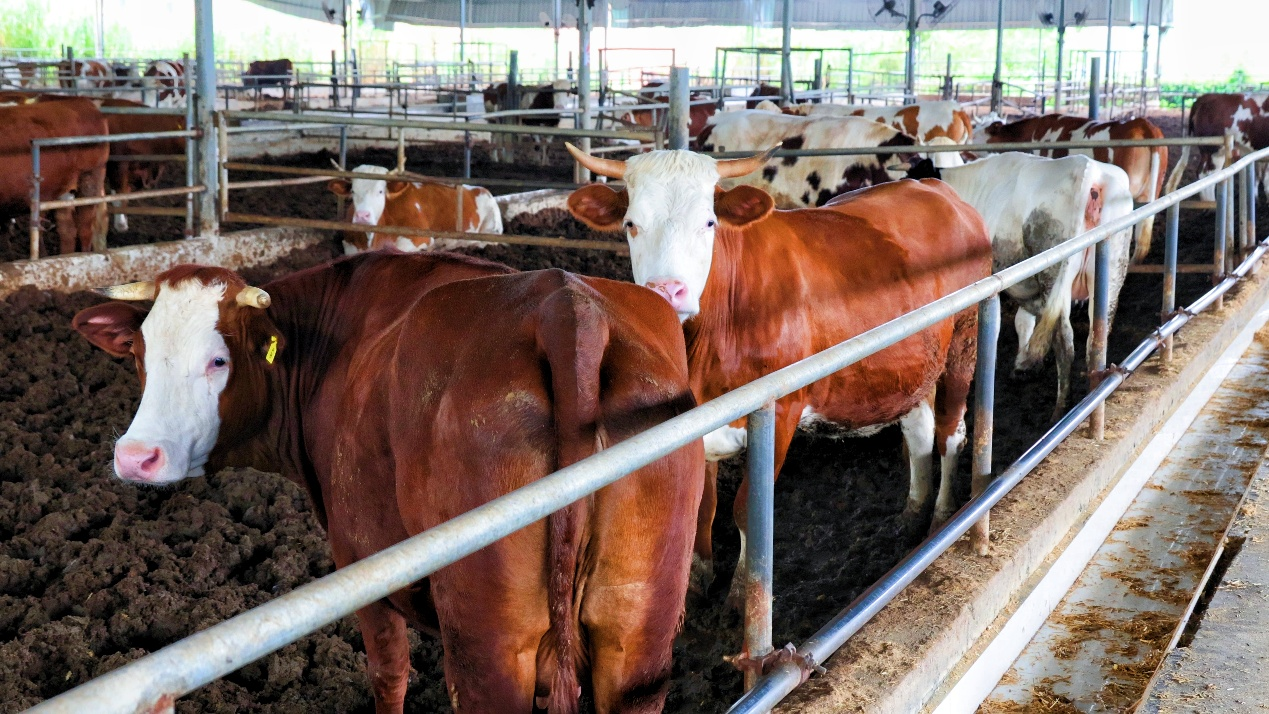 在广西腾德农业发展有限公司的肉牛养殖基地里,标准化牛舍整齐排列,宽敞的养殖区内,肉牛膘肥体壮、悠然采食,现代化养殖场景尽显产业活力。